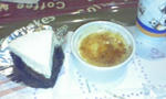 バーナーで焼いたプリンとショコラケーキと東京の水道水(笑)