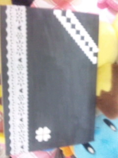 裏表紙はコピックの黒で塗ったくり、レースタイプのシールを貼り付けてデコレーション。