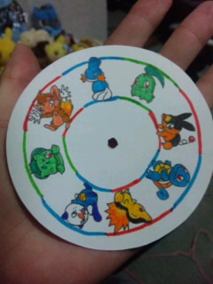 回転する絵の全貌です。描くものを全く考えてなかったので8等分にしてしまったが為に草タイプの最初のポケモンが2匹だけになってしまいました。